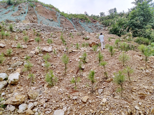 去年,該縣在2016年開始實(shí)施的九宮山非煤礦區(qū)復(fù)綠基礎(chǔ)上,投資兩百萬元對(duì)礦區(qū)復(fù)綠進(jìn)行整改提升,包括竹林山等已復(fù)綠的五個(gè)礦區(qū)和原未納入復(fù)綠范圍的袁家礦區(qū),采取兩種模式進(jìn)行,一是對(duì)原已復(fù)綠礦區(qū)裸露邊坡進(jìn)行復(fù)綠,采用布網(wǎng)保濕,撒播萌生能力強(qiáng),耐干旱脊薄的刺槐、馬尾松等草籽,并種植油麻藤,增加山體復(fù)綠的速度;二是袁家礦采礦區(qū),通過就地平整法、客土覆蓋法等進(jìn)行土地復(fù)墾后造林復(fù)綠,載植濕地松等容器大苗。共完成復(fù)綠整改總面積達(dá)33萬多平米,造林成活率、保存率均幾近100%,種子發(fā)芽率高,蓋度達(dá)到要求,合格率100%。